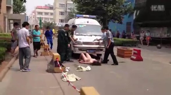 在救護(hù)車將要離開前往醫(yī)院時(shí),該肇事女司機(jī)再次從地上爬起,拽住救護(hù)車的前保險(xiǎn)杠,阻止救護(hù)車離去。