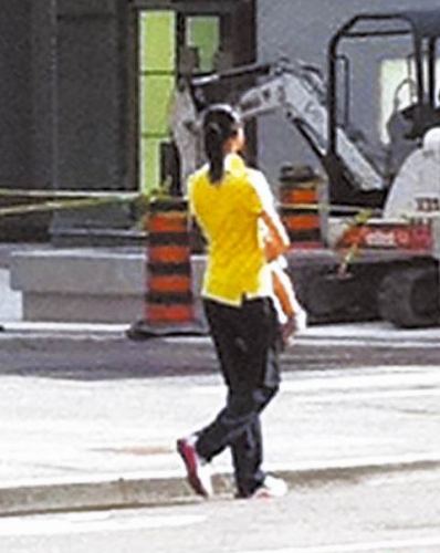 梁洛施日前在溫哥華街頭,抱著大兒子李長治快閃