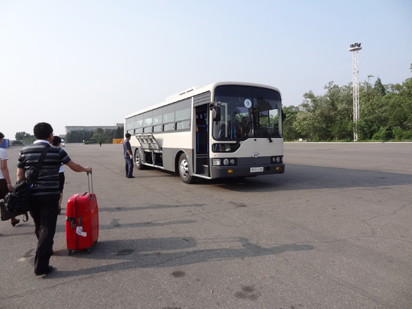 來迎接旅行團(tuán)的是一輛韓國現(xiàn)代大巴車。Darren Qiao說,“車上非常干凈,幾乎可以說是一塵不染?!?/p>