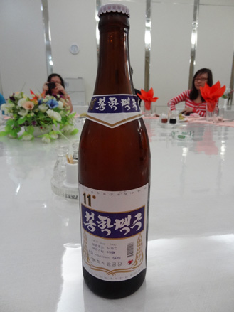 “我們抵達(dá)朝鮮的第一天住在龍江溫泉別墅,晚上在朝鮮的第一頓飯就品嘗到了朝鮮啤酒?!?/p>