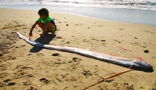 美國(guó)加州海灘發(fā)現(xiàn)4米長(zhǎng)巨型“皇帶魚” 2010年12月,美國(guó)加利福尼亞州馬里布地區(qū)的居民在海灘上發(fā)現(xiàn)了一條身長(zhǎng)超過4米的罕見巨型皇帶魚的尸體。當(dāng)?shù)匾吧鷦?dòng)物保護(hù)機(jī)構(gòu)表示,這種野生大帶魚生活在遠(yuǎn)離陸地的熱帶深海中,是全球已知的最長(zhǎng)“硬骨魚類”。它們性情兇猛,牙齒鋒利,以小型章魚和其他各種魚類為食,并且因其在水中游泳時(shí)體態(tài)優(yōu)雅美麗而得名。 |
