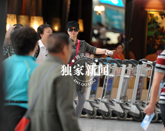 51歲蔡明波點(diǎn)連衣裙扮潮 黑超遮面低調(diào)離京(組圖)