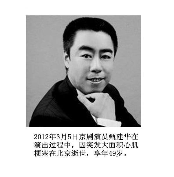 近日,國(guó)家京劇院演員甄建華在長(zhǎng)安大戲院演出京劇《春草闖堂》時(shí),突發(fā)心肌梗塞,搶救無(wú)效去世,年僅49歲。