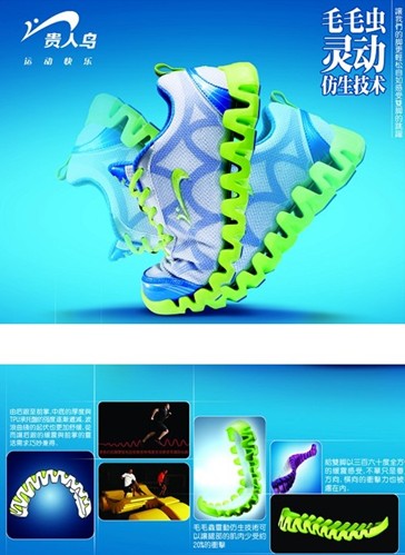 產(chǎn)品設(shè)計與高科技材料的運(yùn)用,充分體現(xiàn)了貴人鳥品牌的運(yùn)動快樂理念,支撐起貴人鳥專賣店的品牌形象。之前貴人鳥的底中底獨(dú)特超彈膠舒適設(shè)計、毛毛蟲靈動設(shè)計、無縫線鞋口3D舒適設(shè)計、超輕52克外底設(shè)計,加上如今的人體工程學(xué)動力系統(tǒng),都將給消費(fèi)者帶來前所未有的柔軟舒適的快樂。讓貴人鳥成為運(yùn)動快樂品牌的引領(lǐng)者。”