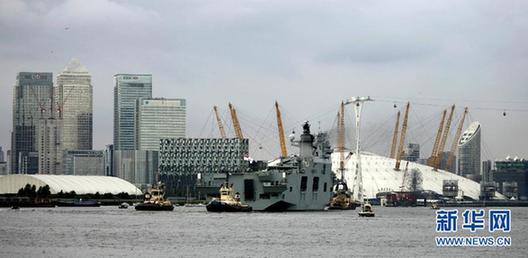 7月13日,英國皇家海軍戰(zhàn)艦“海洋號”駛往倫敦泰晤士河的格林尼治河段水域,以應(yīng)對倫敦奧運會可能突發(fā)的安全問題。