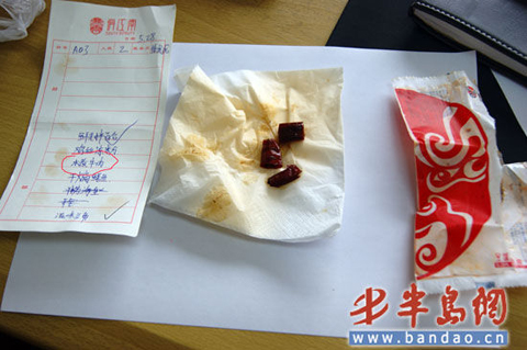 “大堂經(jīng)理查看后,承認是飯店的責任,可以對該菜品免單,遭到我們拒絕后,又改口稱可以整桌菜免單,我們表示反對,大堂經(jīng)理就拋下我們離開了?!眲⑴糠Q,他叫來大堂經(jīng)理作解釋,但是大堂經(jīng)理和他們談了幾句話,就因意見不和不再管他們了。