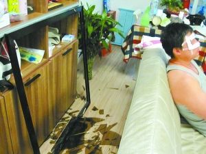 ????張先生說,昨天早上8時許,懷孕3個月的妻子拿著噴壺給沙發(fā)旁邊一株竹子噴水,他當時就坐在沙發(fā)上。妻子剛離開不久,突然有一個玻璃框從他頭頂砸了下來,把他整個人都砸蒙了,于是他下意識地大喊了一聲。