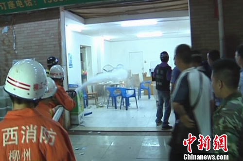 柳江縣消防大隊(duì)介紹,7月23日20時(shí)30分,柳江縣商貿(mào)街一處居民房內(nèi),柳江縣公安局民警在對(duì)一名在家中販毒的男子實(shí)施抓捕時(shí),男子突然持菜刀拒捕,并逃跑至樓下的宵夜店中與