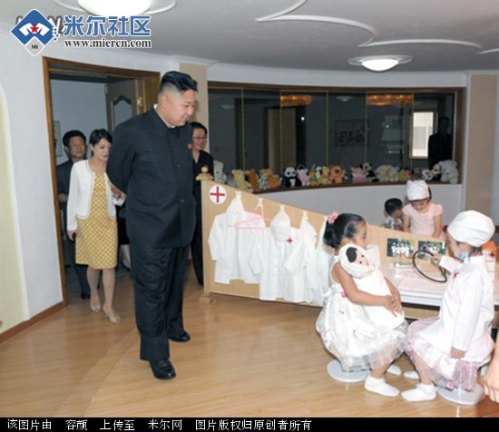 7月15日消息,金正恩在視察平壤慶上幼兒園時,李雪主全程跟隨。