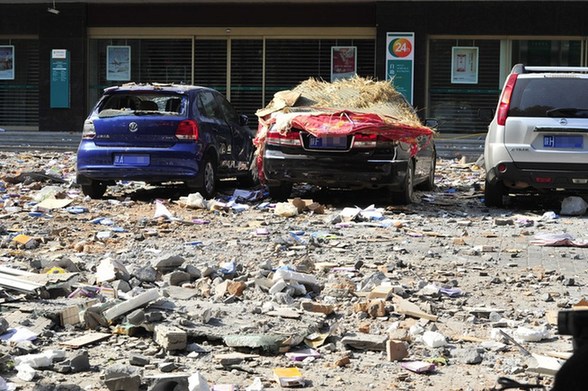 7月29日,西安市蓮湖區(qū)自強(qiáng)西路春曉馨苑外,爆炸造成樓下車輛受損。