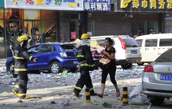 7月29日,西安市蓮湖區(qū)自強(qiáng)西路春曉馨苑外,爆炸造成樓下車輛受損。
