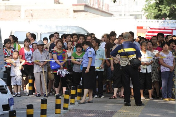 7月29日,西安市蓮湖區(qū)自強西路春曉馨苑外,現(xiàn)場圍觀的民眾。
