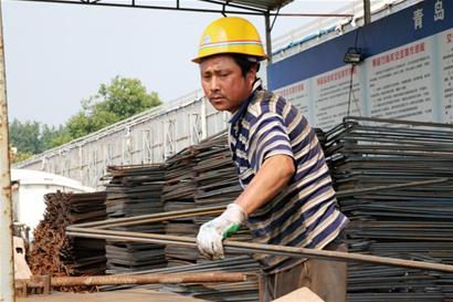 昨天上午10時(shí),記者來(lái)到青島地鐵3號(hào)線匯泉廣場(chǎng)車(chē)站施工現(xiàn)場(chǎng),看到一片火熱的景象,這里由中鐵十七局青島地鐵項(xiàng)目部負(fù)責(zé)施工,由于該站采用明挖法,大部分作業(yè)暴露在太陽(yáng)底下,并且需要用到大量的鋼筋。