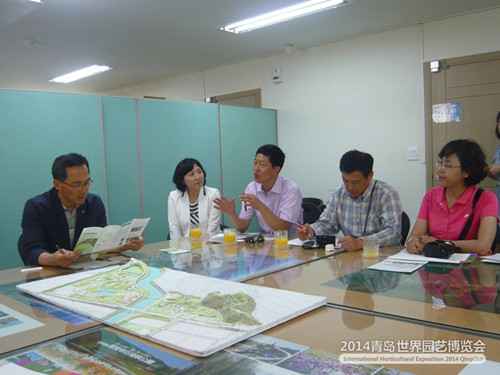 ????7月26日,2014青島世園會副秘書長杜本好一行訪問了韓國順天灣2013世園會組委會。2013順天灣世園會組委會事務局長崔德林接待并介紹了有關情況。雙方就世園會規(guī)劃、建設、招展、市場開發(fā)、運營等籌辦工作的思路和做法進行了深入交流。青島世園會招展部部長高群、市場開發(fā)部部長朱悅濤等參加了會見和座談。