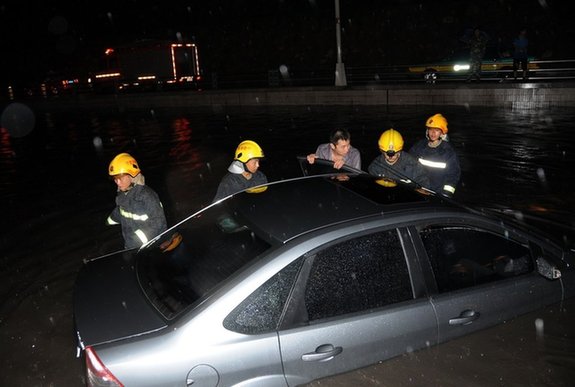 7月30日,消防官兵在銀川市黃河路鐵路橋下救援被困車輛。