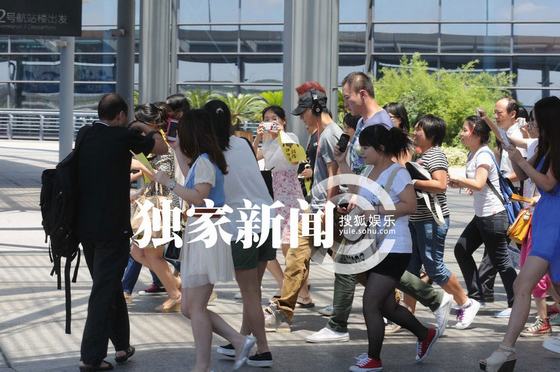 韓庚戴耳機(jī)不理粉絲接機(jī) 保鏢護(hù)駕與記者起沖突(組圖)