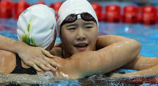 決賽正式開始,處在第一道的是英國人米利,第二道的是匈牙利人霍斯祖,第三道是美國人萊維倫茨,第四道是中國選手葉詩文,第五道是澳大利亞選手庫迪斯,第六道是美國選手庫克斯,第七道是澳大利亞名將賴斯,處在第八道的是來自津巴布韋的選手考文垂。