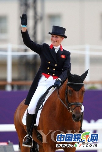 公主Zara揮手致意觀眾席上的王室家人:也許是因?yàn)榧胰说拇罅χС趾妄R心協(xié)力,當(dāng)日Zara表現(xiàn)甚佳,而Zara的愛馬High Kingdom t也表現(xiàn)不俗,為主子博得了陣陣喝彩。溫莎家族的成員自小就成長(zhǎng)在馬背上,歷屆奧運(yùn)會(huì)上的英國(guó)王室也都在馬術(shù)競(jìng)技上表現(xiàn)不俗,看來奧運(yùn)比賽面前英國(guó)王室也頗具虛榮心,在勝利在望的比賽上全部現(xiàn)身,只為博得整個(gè)家族的榮譽(yù)