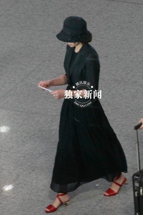 董卿素顏亮相驚路人 黑衣紅鞋混搭顯潮范(組圖)