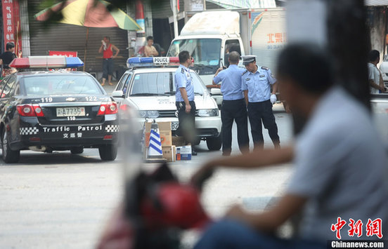 “8.10”持槍搶劫案發(fā)后,重慶警方在沙坪壩歌樂山一帶展開搜捕行動,追捕搶劫案疑犯周克華。8月13日,記者前往位于歌樂山山腳下的山洞村及新橋街道,實地采訪重慶警方的搜捕過程。圖為警察設(shè)卡一一排查犯罪嫌疑人。