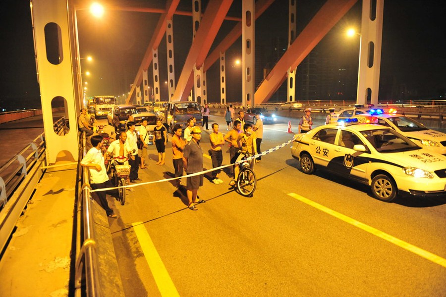 東平大橋自北往南方向已經(jīng)封鎖。