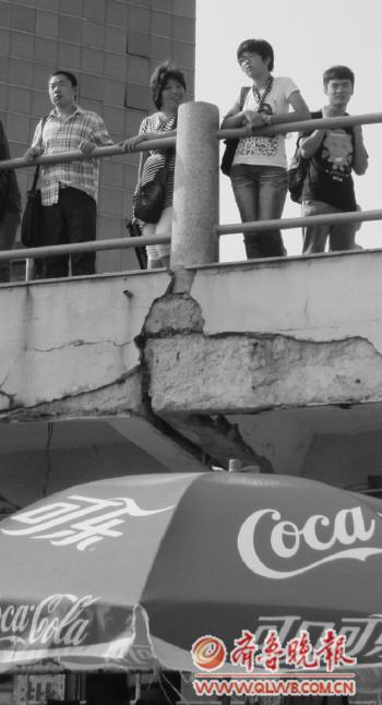 ????“裂縫還挺寬的呢,應該修繕一下?!庇慰完惻窟@樣認為。另外一名來自南京的游客王先生則認為,不管是墻皮裂縫還是混泥土結構有問題,都應該引起相關部門的注意?!斑@里是一個旅游景點,每天站在上面的人很多,出了危險怎么辦?”王先生說。