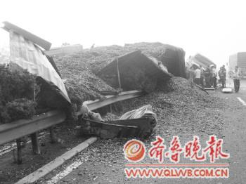 ????路政部門查明,事故起源是從黃島駛來的魯E××解放油罐車與前行的魯EB××歐曼貨車追尾,致使車輛將中央隔離帶護(hù)欄沖撞得變了形,兩車駕駛室也嚴(yán)重變形。由于事發(fā)突然,后面緊跟著的兩輛罐車、一輛小廂貨在緊急情況下也處理不當(dāng),相繼發(fā)生追尾,事故造成五輛車追尾,至少造成兩人受傷。