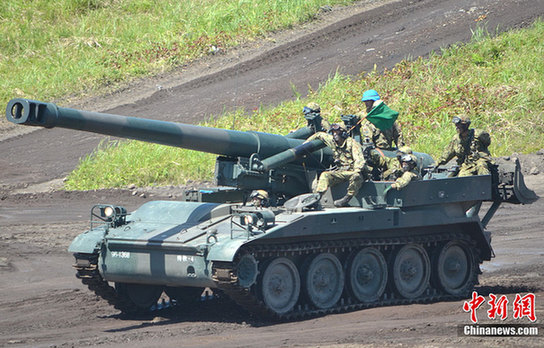 8月21日,在日本2011年度富士綜合火力演習(xí)中,203毫米自走式榴彈炮。