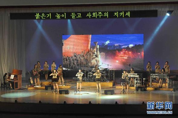 朝中社8月26日提供的照片顯示,朝鮮最高領(lǐng)導(dǎo)人,朝鮮人民軍最高司令官金正恩在視察前線東部途中,與人民軍官兵一同觀看“慶祝金正日開始先軍革命領(lǐng)導(dǎo)52周年(8月25日)”牡丹峰樂團(tuán)火線演出。金正恩當(dāng)日在慶?!?·25”宴會(huì)上致辭說,朝鮮勞動(dòng)黨要緊握“先軍”的槍桿子,對(duì)敵人的進(jìn)攻予以殲滅性打擊。