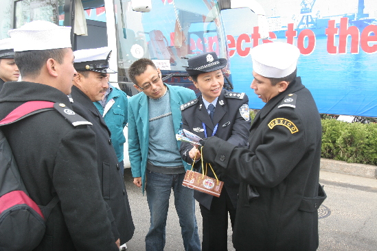 港口公安局民警熱心地為外國(guó)士兵解答問題