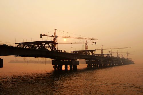 到了1998年11月,工程眼看勝利在望,但是天不作美。俗話說“萬事俱備只欠東風(fēng)”,他們卻是“萬事俱備只怕大風(fēng)”,因為風(fēng)大浪高,連日不停,跨橋預(yù)制件總是安裝不上。那時候,常德傳局長天天盯著,尹洪友和他的工程建設(shè)團(tuán)隊也是眼巴眼望看著天。11月15日,風(fēng)收了些,能不能停還說不準(zhǔn)。港口一聲令下:準(zhǔn)備空載聯(lián)動試車!
