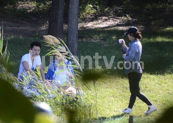 李小璐挺大肚逛公園 賈乃亮嘟嘴配合愛(ài)妻自拍(組圖)