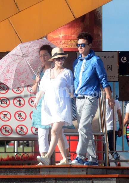 李小璐挺大肚逛公園 賈乃亮嘟嘴配合愛妻自拍(組圖)