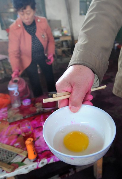 圖為剛打的雞蛋,也出現(xiàn)了“血絲”。