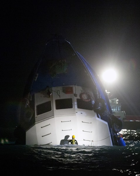 10月1日晚,香港南丫島榕樹灣附近海面被撞沉的渡輪,現(xiàn)場救援。