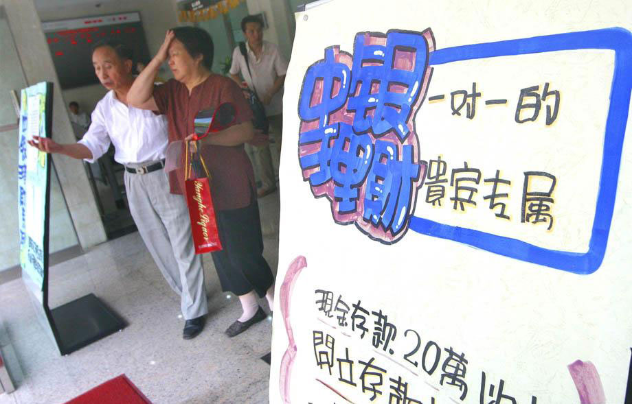 2004年9月8日,南京一家中國銀行打出“存款20萬元即可享受一對一中銀理財貴賓專屬服務” 的招貼,吸引客戶眼球。