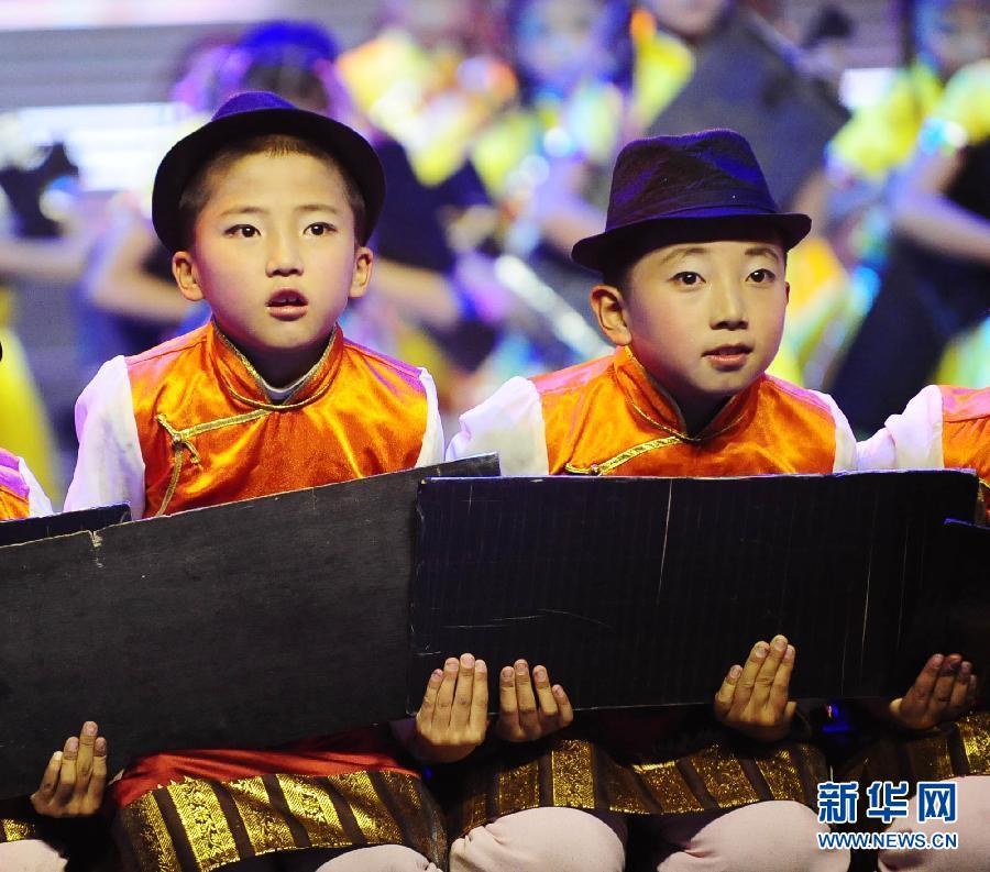 小朋友在表演節(jié)目(10月26日攝)。 10月26日,西藏自治區(qū)教育系統(tǒng)舉行“喜迎十八大 頌歌獻(xiàn)給黨”文藝晚會(huì)。新華社發(fā)(劉坤攝)