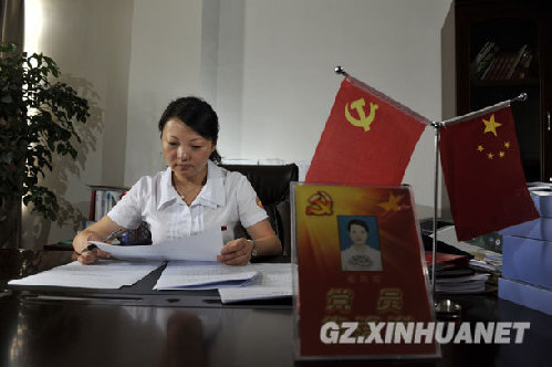 崔向前在辦公室內(nèi)翻閱文件(8月21日攝)。新華社記者 歐東衢 攝