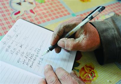 記者在老牛的賬本里還發(fā)現(xiàn),老牛記錄時(shí),喜歡編順口溜。為便于記住下鄉(xiāng)的路線,他把鎮(zhèn)村的名字編成順口溜“孫南捕(樸)河蝦(夏),張望牛周店”。他還把自己積累的科技小秘方編成順口溜,像“秋黍晚麥不進(jìn)家,年年不收晚地瓜”。菜肉價(jià)跌漲,他也用順口溜編寫:雨過天晴朗,蔬菜價(jià)格降。財(cái)神節(jié)剛過,東西有回落。外地蛋販來搶購(gòu),雞蛋價(jià)格又抬頭。類似順口溜,在老牛的記賬本里隨處可見,讀起來朗朗上口。