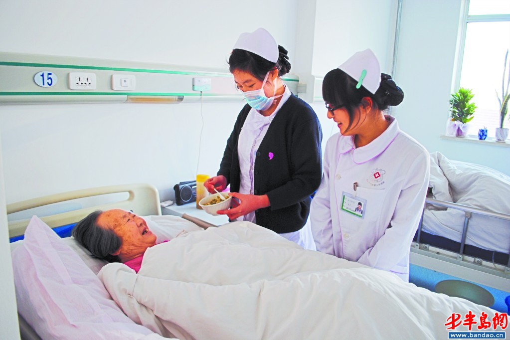 比宮佩旋還嚴重的病患,在市南區(qū)人民醫(yī)院的這個醫(yī)療專護病房內(nèi)還有40個。2011年,本市決定在公立醫(yī)院內(nèi)試點成立針對有長期醫(yī)療需求的、無生活自理能力的老年病人進行醫(yī)、護、養(yǎng)結(jié)合進行統(tǒng)籌結(jié)算的醫(yī)療專護病房,并確定市南區(qū)人民醫(yī)院成為首家試點醫(yī)院。今年,專門設(shè)置的醫(yī)院專護病房改造擴建成當今的規(guī)模,現(xiàn)有床位64張,醫(yī)務(wù)人員40名,差不多一個病患配一個醫(yī)務(wù)人員照顧,比例相當高。