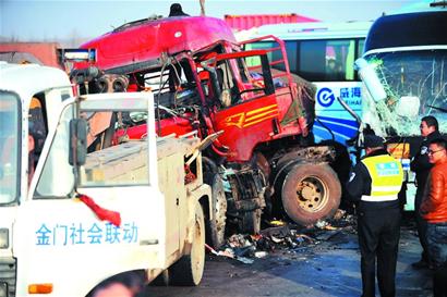 “煙臺、威海很多地方都下了雪,今天車禍可能和路面結冰有關。 ”一名過路司機介紹。而參與救援的消防官兵告訴記者,他們趕到現(xiàn)場時,在路中央發(fā)現(xiàn)了不到1厘米厚的冰面。 (記者 劉卓毅)