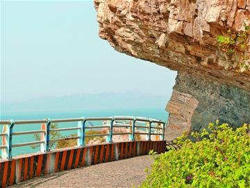 夕陽(yáng)浴晚霞的時(shí)候,海島南端,一道山崖橫空出世,似一只臥身昂首的猛虎,此時(shí)可以看到“虎口含丹”的神奇畫景,這就是靈山島的著名景點(diǎn)老虎嘴。