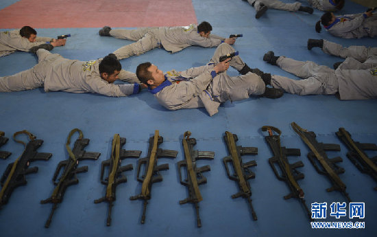 在室內(nèi)訓(xùn)練場,隊(duì)員進(jìn)行手槍射擊姿勢訓(xùn)練。職業(yè)保鏢,面對針對復(fù)雜局勢及特定環(huán)境下,只有把對槍械的靈活掌握和快速有效的技戰(zhàn)術(shù)相結(jié)合起來,才能最大限度的化解危機(jī)。