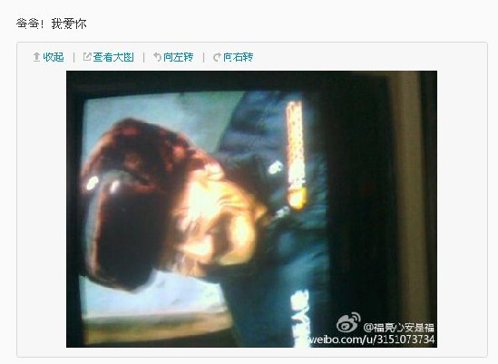 一個小時后,記者一刷微博,赫然看見,亮亮的微博上寫著五個字:“爸爸,我愛你!”