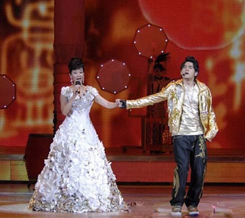 周杰倫一身金色造型亮相,與宋祖英合唱