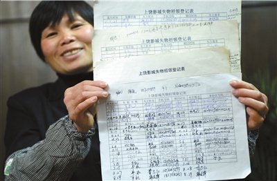 鄭冬花展示她撿到的錢物的登記表(2月20日攝)。