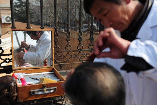 清兵入關(guān)后剃頭行當(dāng)才興起。當(dāng)時(shí),清朝統(tǒng)治者強(qiáng)迫漢人依從滿族剃發(fā)習(xí)俗,“留頭不留發(fā),留發(fā)不留頭”,剃頭匠就在這種高壓環(huán)境下產(chǎn)生了。最初,清代的剃頭匠叫“待招”,不是手藝人,而是政府官員。 張力偉 攝