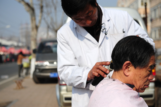 “這一行講究緣分,如果剃頭匠跟顧客的頭發(fā)沒有緣分,是怎么剃也剃不好的。所以,每個人都有自己的老主顧,別人搶不去?!?#160;張力偉 攝