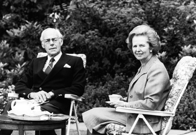 1987年,時任英國首相撒切爾夫人與丈夫丹尼斯在一起。