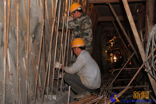 在地鐵區(qū)間隧洞開挖支護(hù)工序完成后,即轉(zhuǎn)入二次襯砌工序。二次襯砌施工前,首先進(jìn)行基巖巖面處理。需要在超挖處回填平順,鑿除局部欠挖的地方,確?;嫫巾槦o棱角,無突出鋼筋等。然后利用預(yù)留的注漿孔進(jìn)行初期支護(hù)注漿,確?;鏇]有明水流。下面才算正式進(jìn)行二次襯砌的基本工序--防水板的鋪設(shè)。首先掛土工布及防水板,一定按照設(shè)計打設(shè)PVC防水板墊片,確保防水板平順無褶皺,在使用爬焊機(jī)焊接防水板時一定要飽焊,不漏焊;其次進(jìn)行鋼筋綁扎,確保鋼筋的層間距、水平間距和鋼筋保護(hù)層是質(zhì)量控制的重點。待這些完成后,即可將二次襯砌臺車推移到位,根據(jù)技術(shù)人員測得施工控制點,將全自動液壓臺車準(zhǔn)確定位;最后一步即進(jìn)行商品砼的澆灌。在澆筑前做好施工縫的鑿毛,控制原材料質(zhì)量,在澆筑時控制澆筑速度,澆筑時間,不能漏振,確?;炷粱炷镣庥^質(zhì)量。